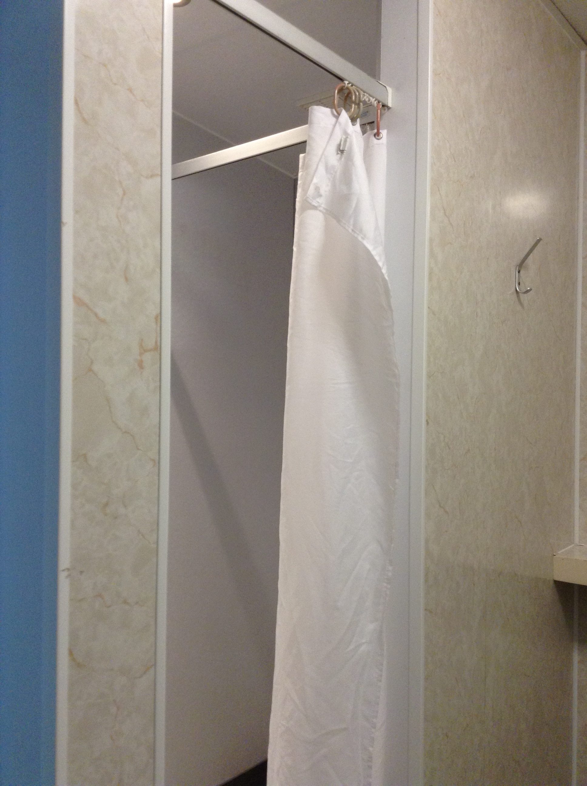 The dorm had 3 bunk beds with toilets and showers in separate rooms across the corridor. The door to the shower room could not be locked and the cubicles only had a curtain for privacy.